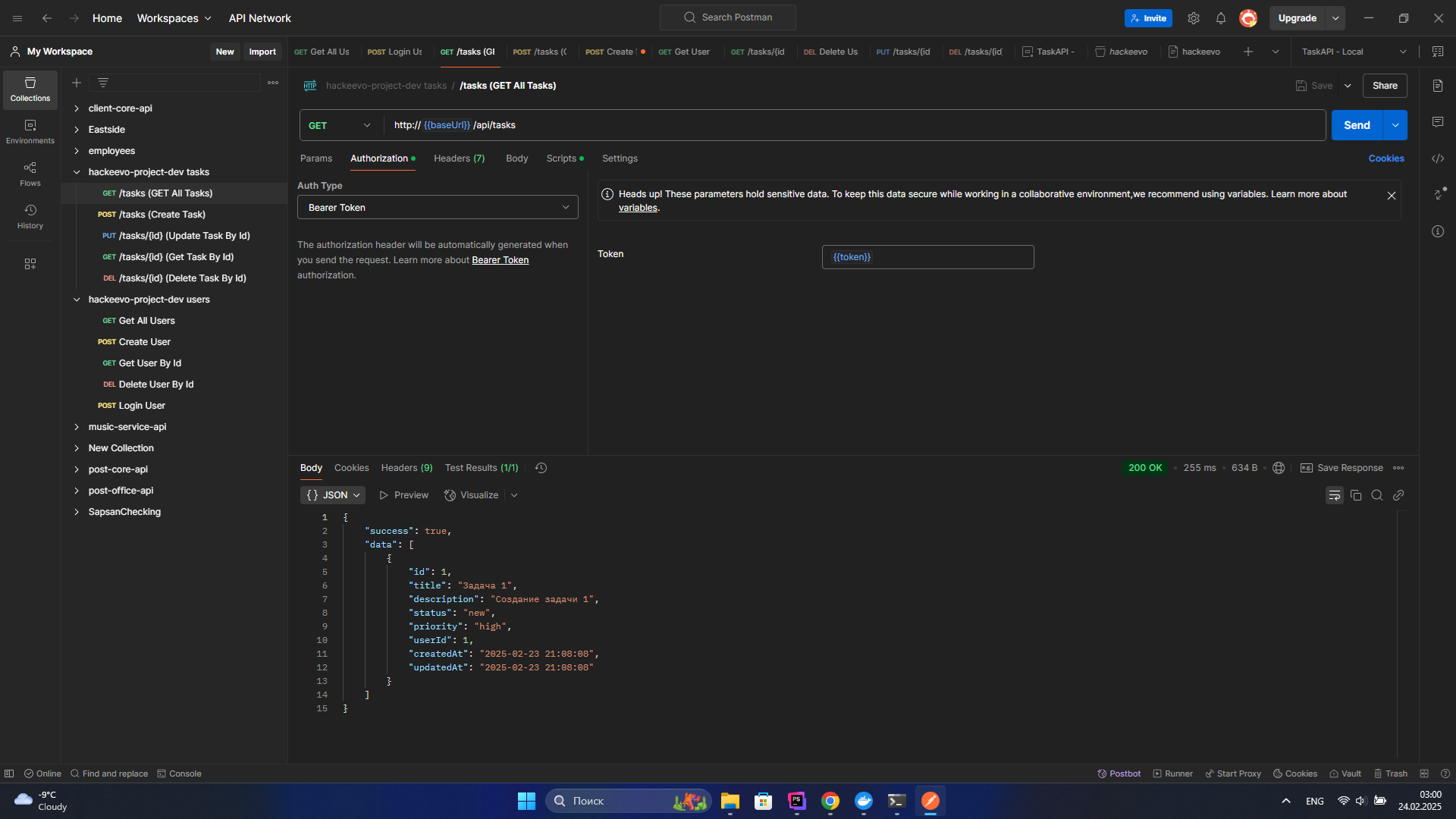 Task Manager is a backend service built with PHP and MySQL for managing tasks and users via API. Runs in Docker containers (nginx, php-fpm, mysql). Implements transaction handling (commit/rollback) for safe user and user's tasks deletion. Tested with Postman, deployed via Git.